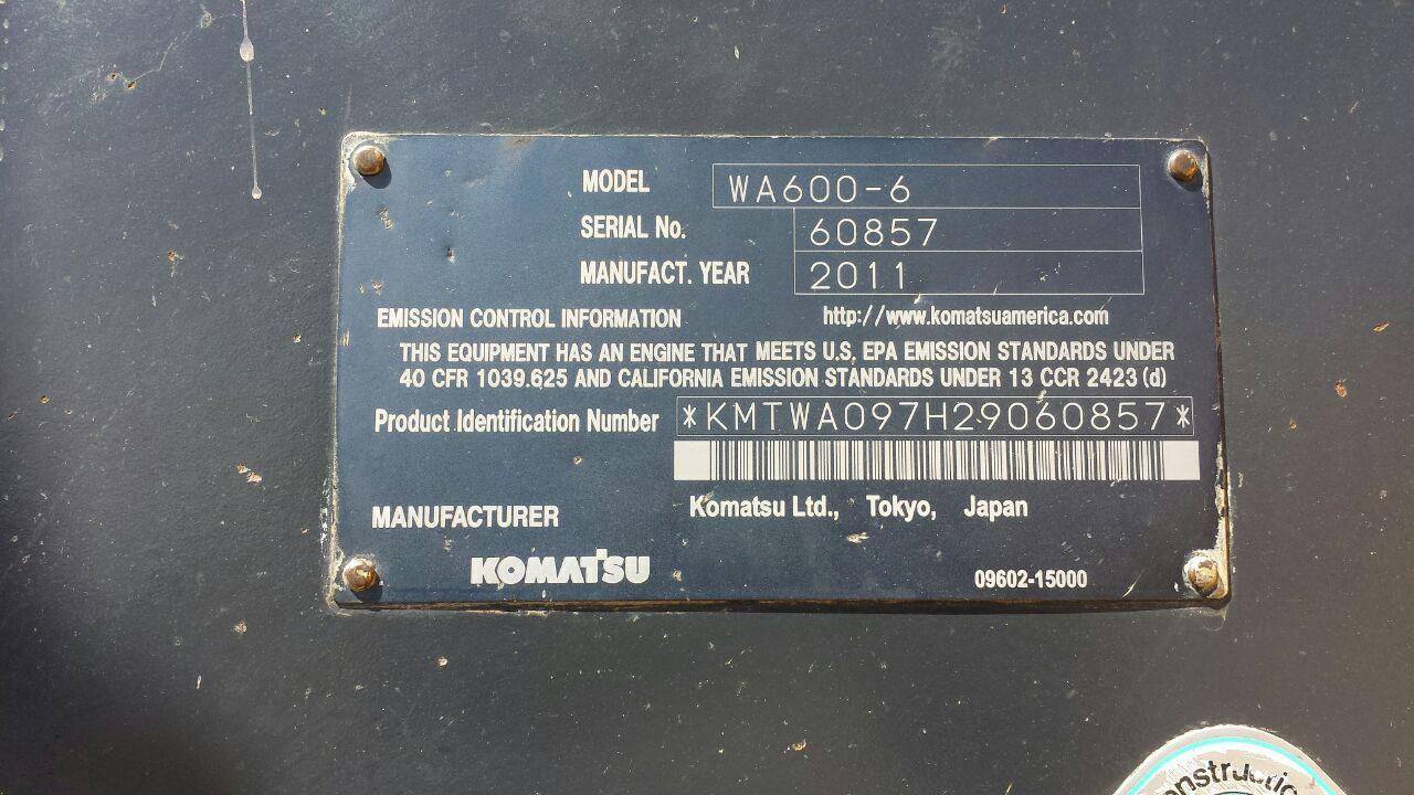 لودر کوماتسو ۶۰۰ خط ۶ مدل ۲۰۱۱ بسیار تمیز و کم کار